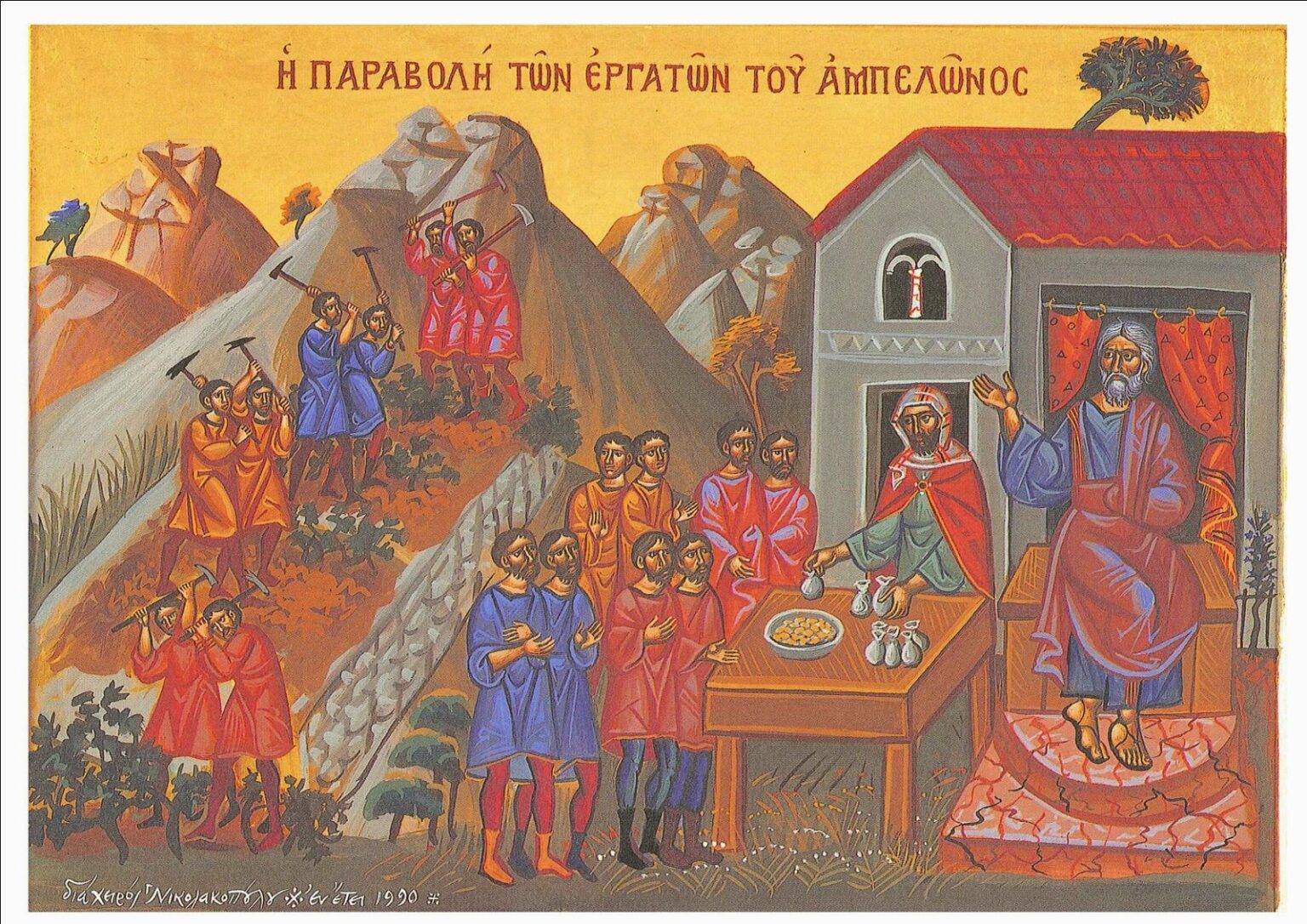 “Andate anche voi nella mia vigna; quello che è giusto ve lo darò”. Ed essi andarono. Uscì di nuovo verso mezzogiorno, e verso le tre, e fece altrettanto. Uscito ancora verso le cinque, ne vide altri che se ne stavano lì e disse loro: “Perché ve ne state qui tutto il giorno senza far niente?”. Gli risposero: “Perché nessuno ci ha presi a giornata”. Ed egli disse loro: “Andate anche voi nella vigna”. Quando fu sera, il padrone della vigna disse al suo fattore: “Chiama i lavoratori e dà loro la paga, incominciando dagli ultimi fino ai primi”. Venuti quelli delle cinque del pomeriggio, ricevettero ciascuno un denaro. Quando arrivarono i primi, pensarono che avrebbero ricevuto di più. Ma anch’essi ricevettero ciascuno un denaro.